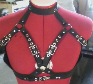 Leather cupless halter & choker, with several adjustable buckles. Sizes SM/MED and L/XL. LR-HAL 271