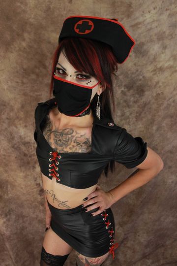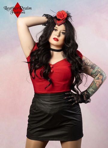 Leather skirt style garter belt with adjustable snaps in back. Sizes XS-XL. LR-GB-366