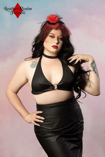 My original plain leather bikini top with neck and body ties. Size S/M fits up to a C cup, L/XL fits most D & DD cups. LR-BKN-201