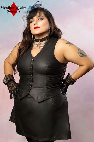 Woman's vest, snap front and lacing in the sides for an adjustable fit. Sizes XS-XL. LR-VST-293