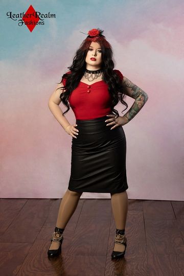 Above the knee and form-fitting. Sizes XS-XL; XXL (add $10.00) LR-SKRT-555